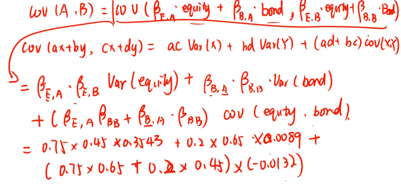 cov(ax+by, cx+dy)=ac*var(x)+bd*var(y)+(ad+bc)cov(x,y)