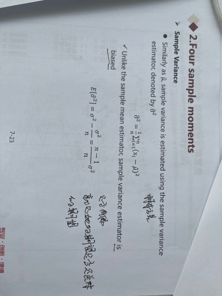 同学你好,一般总体的数目特别的庞大,没办法一个个统计,因此就会使用样本来代替总体进行估计,比如我要统计全国人口的身高平均数,一个个调查成本很高,于是就会选取某一个地区来统计,这个就是样本,通过统计样本数值来估计总体。样本的标准差是除以n-1,因为均值我们可以用其他样本数据来进行表示,总体标准差是除以n,因为我们知道总体个数是n。