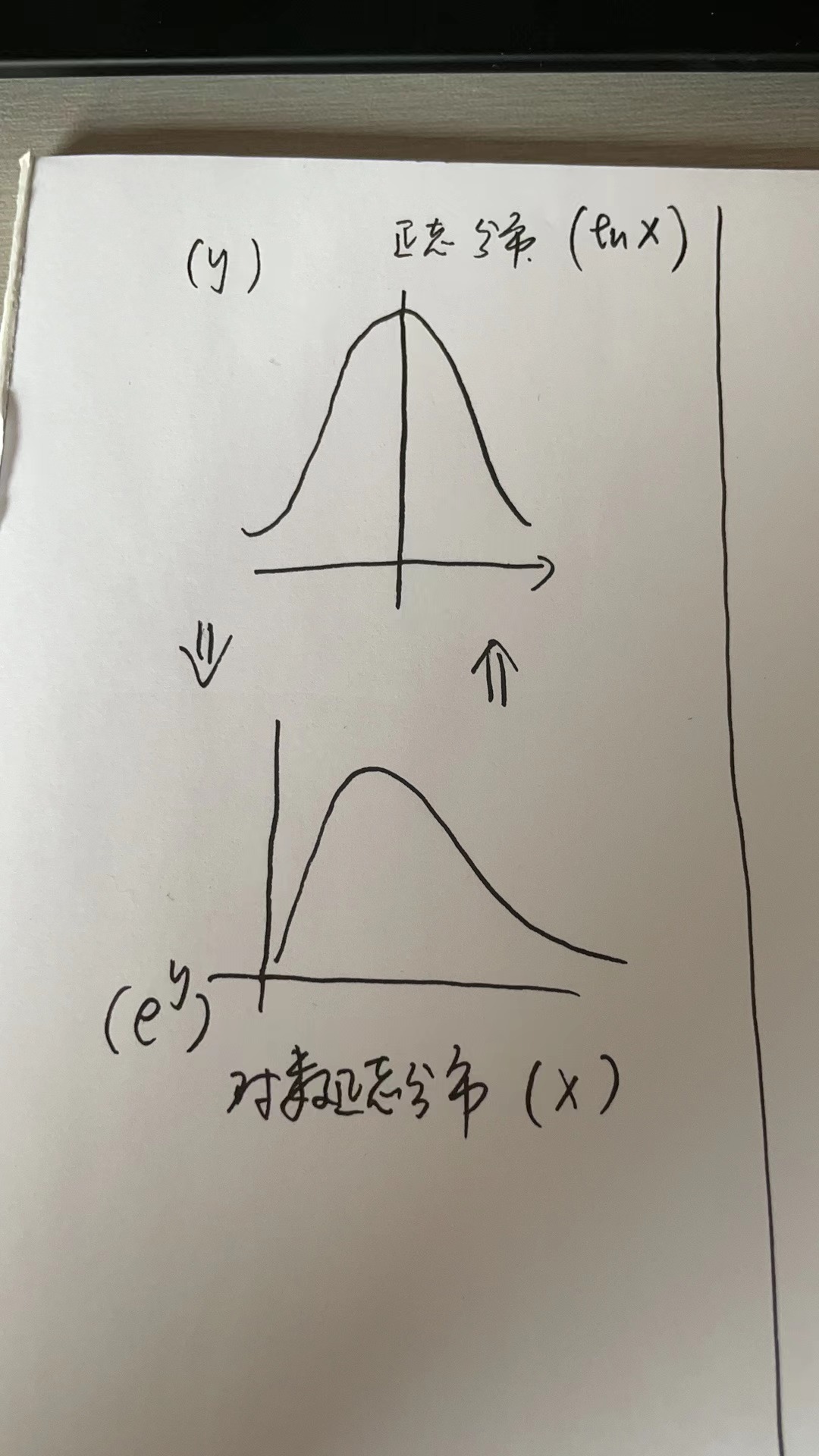 反过来,如果一个数是服从正态分布的,那么这个数的以自然对数为底数的指数函数(e^x),就是服从对数正态分布的。