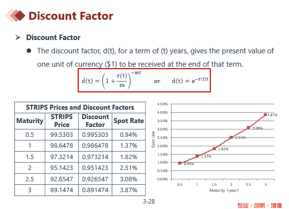 折现因子=1/(1+i)^n,[i=预期利率,n=年数],简单地说,折现因子就是说在n年后,在当时预期利率是i的时候,当时的一块钱可以折合成现在的多少钱