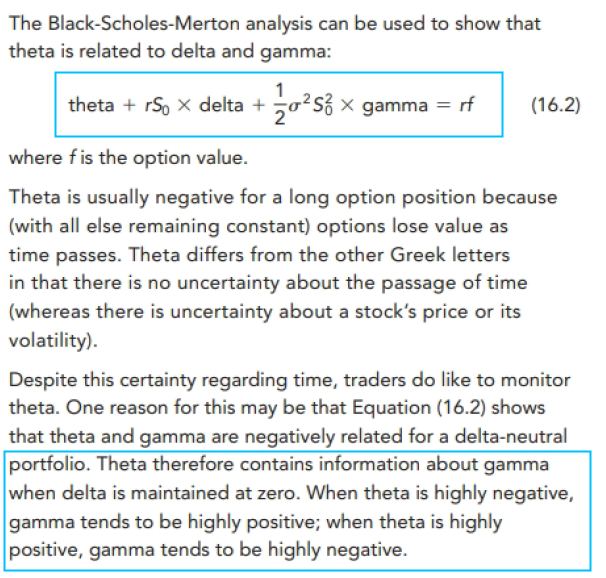 同学你好,A选项是原版书的一句话,可以根据16.2这个公式进行理解,通过这个公式我们可以发现theta和gamma是负相关的,当theta是负的,gamma是正的;当theta是正的,gamma是负的。