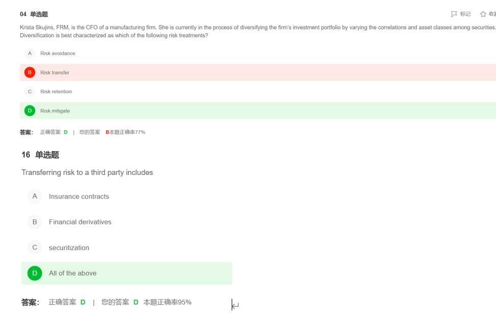 参见如下两题,一个说deversify是缓释,一个说是转移