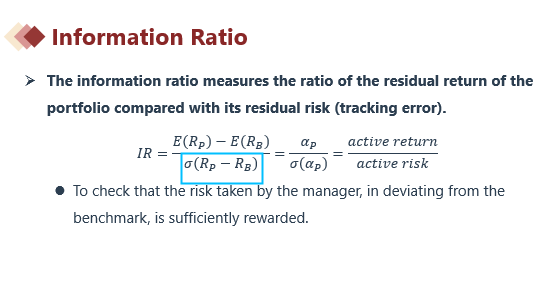 同学你好,IR的分母是tracking error 题目已经给出来了,最后一行数据,直接使用就可以。