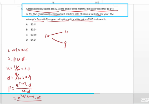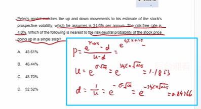 同学你好,U和D有两种算法,一种是你发的图片这种,一般题目会说上涨或者下跌10%,可以知道U和D,还有一种就是常规做法。