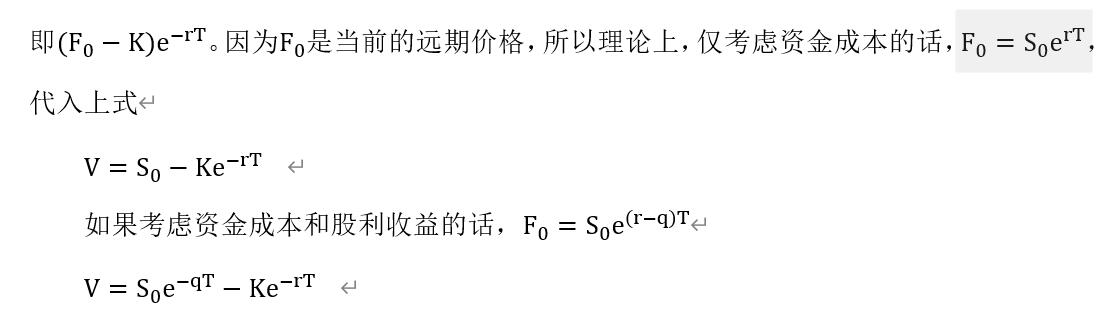 这个时候,如果F0高于期初约定的价格K,证明合约远期价格上升,多头方赚钱,此合约给投资者带来的价值就是F0-K,但是F0-K的好处最终是T时刻实现的,并不是0时刻实现的,所以,投资者虽然可以根据二者之间的差额确认给投资者带来的好处,但是这个好处是要T时刻才能够成立的,如果投资者要算这个好处现在值多少钱,投资者还要把它折现到0时刻,即(F0-K)的折现值,这就是远期合约的价值。