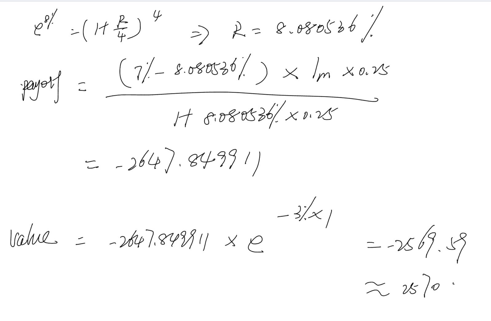 为什么我payoff算出来是-2646.5399 然后最后折现之后为-2568.3228