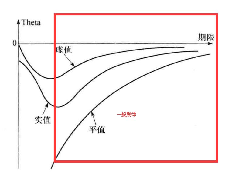 可以这么理解,无论是虚值、平值还是实值,随着时间的流逝,都是加速贬值的。【这是一般规律】