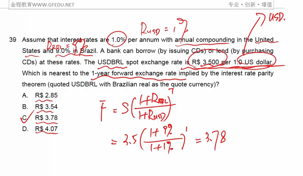 经典题中这道题 1USD=3.5Brazil,老师说的是把USD当标的,所以除以1+Rusd