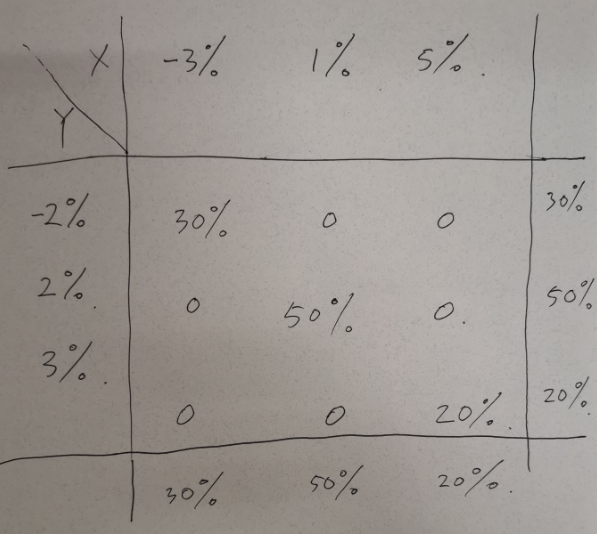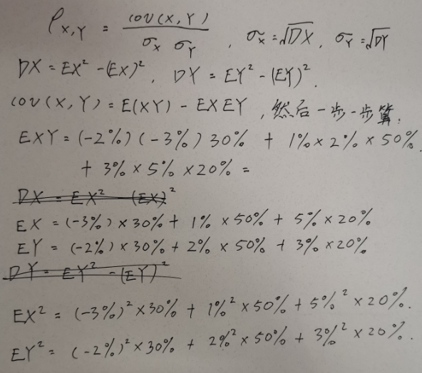 这道题就是求个相关系数,由于涉及到联合概率,所以计算和普通的相关系数不一样,不方便直接拿计算器计算。