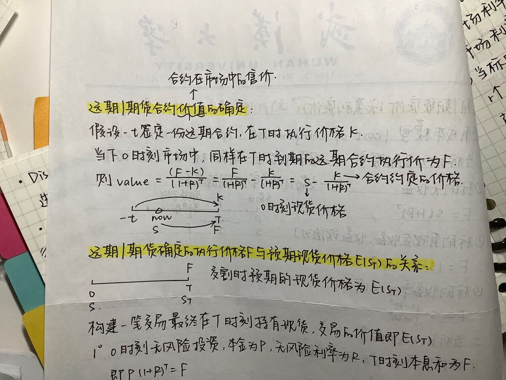 这个求导我是懂的 但是我不理解 在第三门中 老师讲远期和期货合约价值的确定公式不是一样的嘛 为什么这里的期货价值用的是确定交割价格的公式呢 (这里的笔记显示远期和期货的value都是用这个公式 delta不是应该都等于1吗