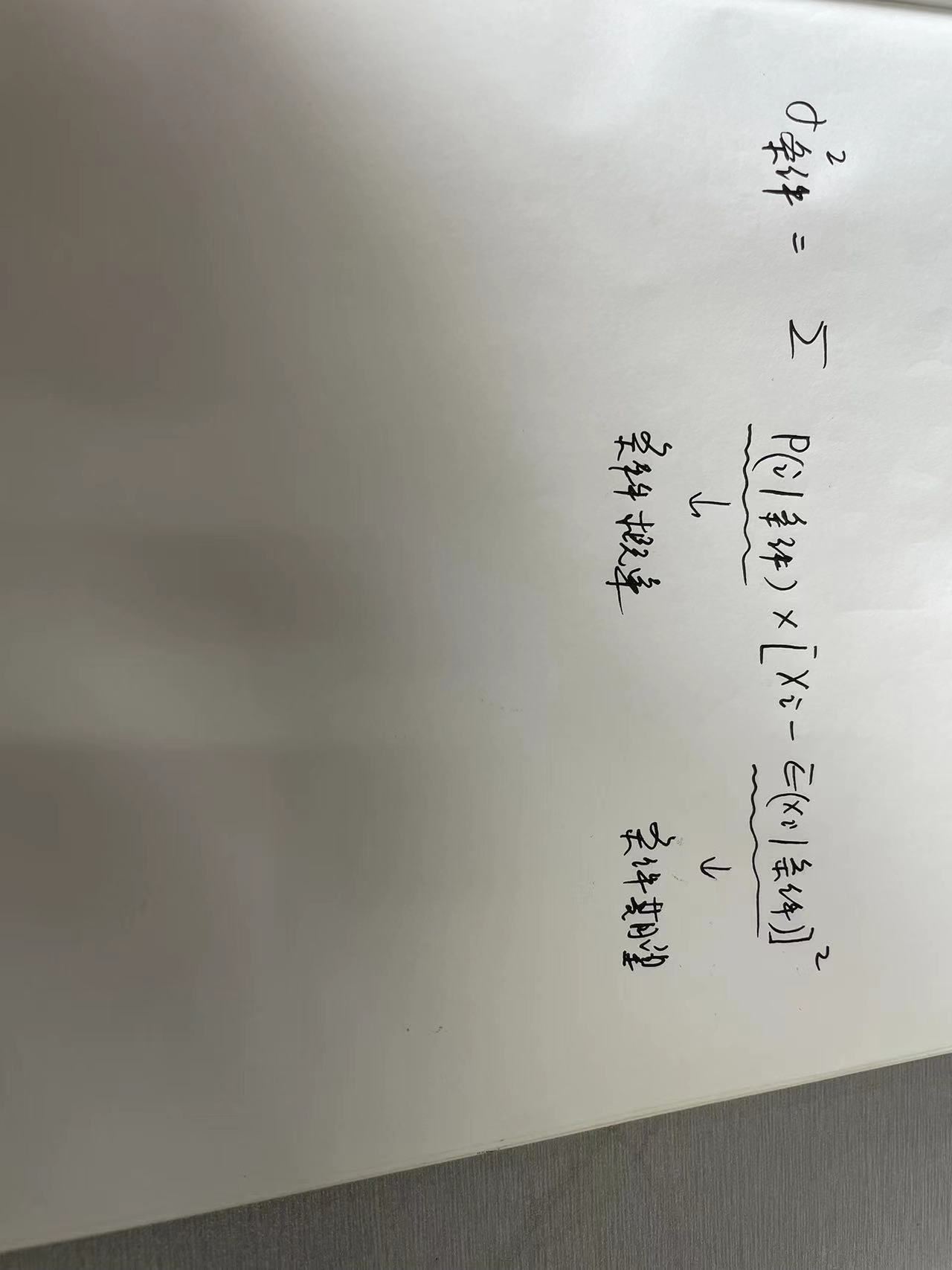 一个是将方差中的期望值换成条件期望值;二是将方差中的概率都换成条件概率。