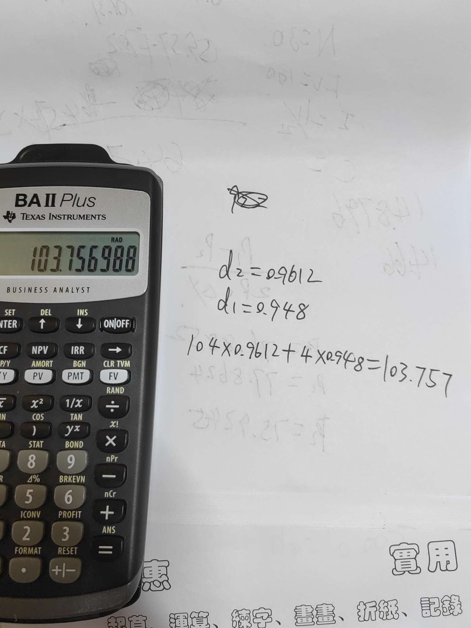 d1算错了,应该是1.0548,折现因子为什么能大于1?