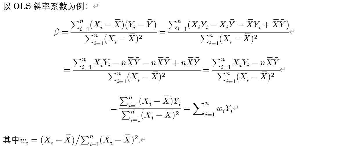 同学您好。OLS估计量的“线性”是对于Y来说的。详见下图。同学只需要记忆OLS估计量是线性估计量这一结论,无需深究,超纲了。