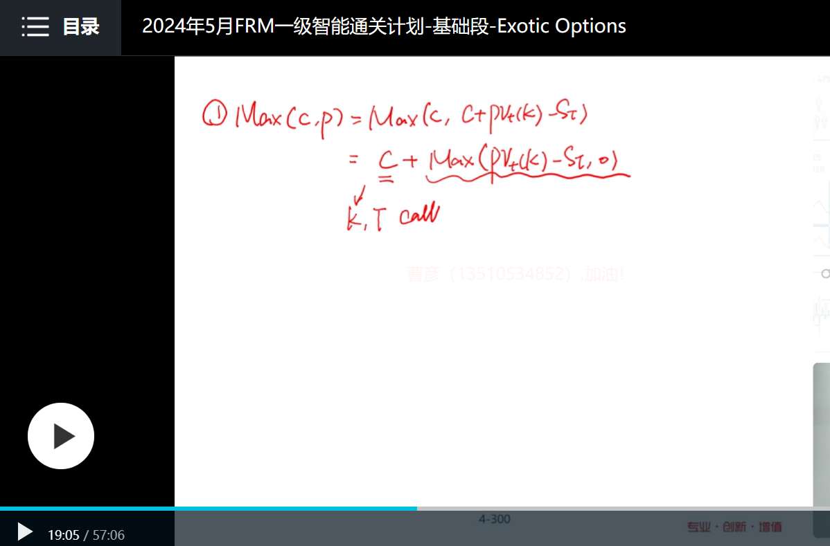 图中公式的PC是在t时点看,选择期权的价值。