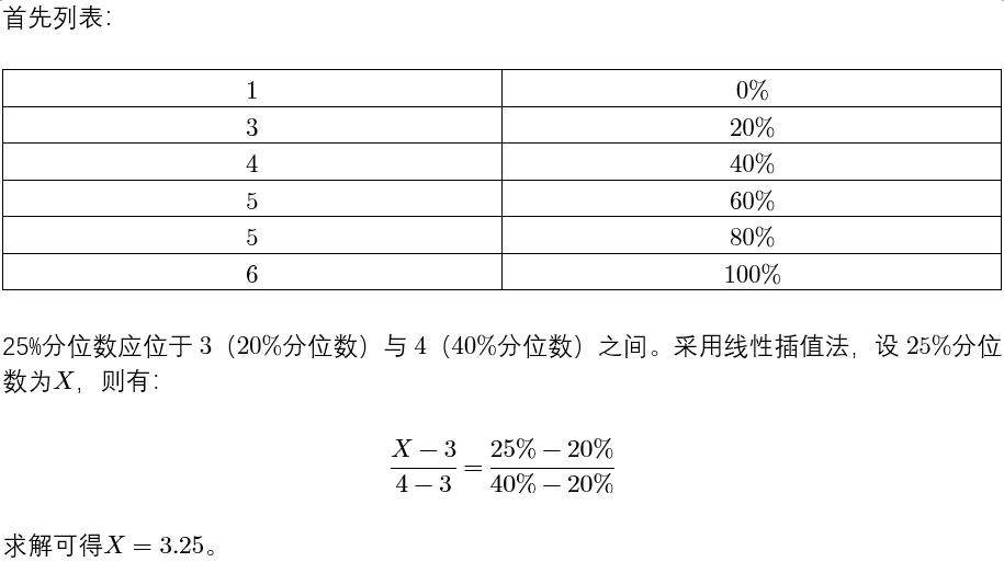 求25%的分位数是不是错了?我认为是第二个数占25%,同下面75%分位数的算法,请老师确认或解答