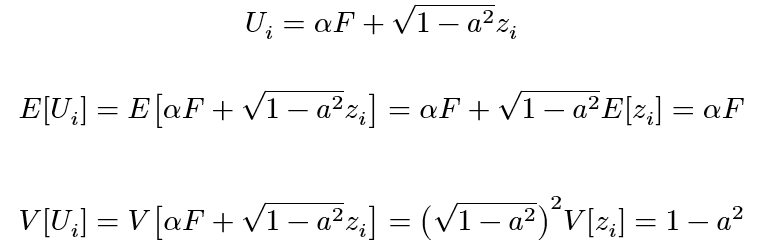 请问在one-factor correlation model时说Ui-N(0,1)因为F和Z都是标准正态,为什么到Vasicek Model U的均值和标准差就不是0和1了呢?是这里的F和Z也不再是标准正态了吗