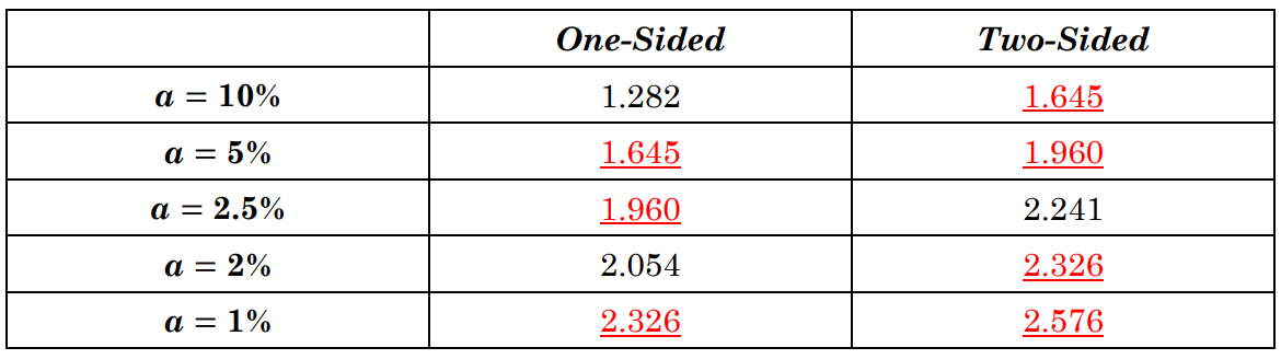 老师,正态分布单尾和双尾的重要分布点总结有吗?