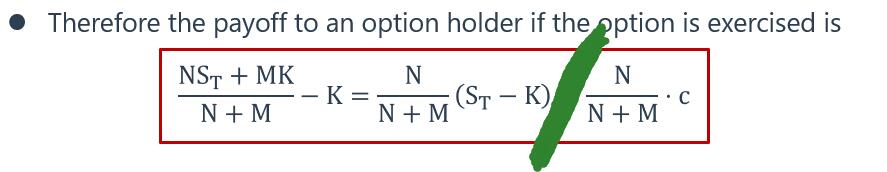 所以你写的公式只能知道期权未来收益是多少。不能算出期权价值。需要使用N/(N+M)*c