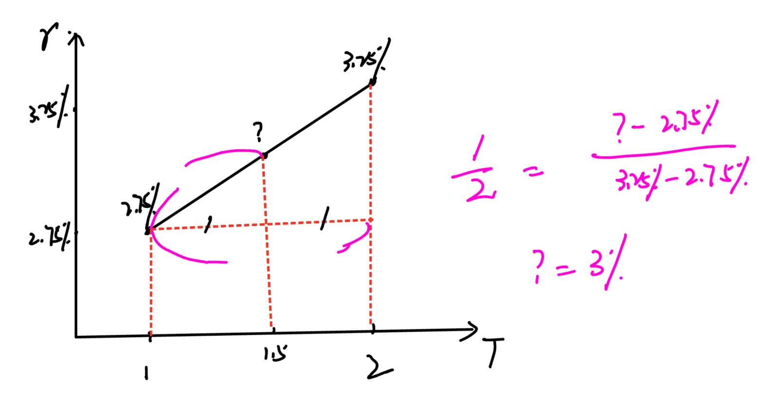同学你好,线性插值法,其实就是根据以前的相似三角形得出的。,如下图,左侧小三角形,与大三角形相似,相似比为1:2