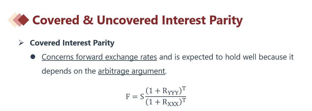 如下图。所谓抛补利率平价(covered-interest-rate-parity)指的是,在即期将本币兑换为外币的同时,在远期外汇市场上,卖出远期外汇,以锁定将来的汇率。这样的话,等到本币兑换的外币在外国投资期到之后,可以以事先确定的汇率兑换回本币。可以这样帮助理解,所谓的抛,指的是即期将本币兑换为外币;所谓的补,指的是远期再将本币买回所作的合约。