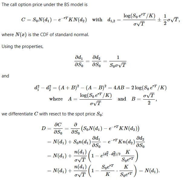 为什么这里C对S求偏导就是N(d1)呢?C的公式里面包含d1、d2,它们里面也都含有S,为什么不对这些S也一起求偏导?