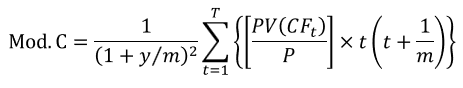 同学你好。因为这里后面乘上的20和21是按期算的,不是按年算的。这里由于是按半年复利,所以20指的是20个半年期,对应10年,t*(t + 1)即20*21。乘以1/4是因为需要将期数调整回年数,故20和21均需乘以1/2,1/2*1/2 = 1/4。这个本质上还是取决于如何推导的convexity。更一般地,可以直接使用下图中的公式进行计算,其中t即年数而不是期数,m为复利频次。