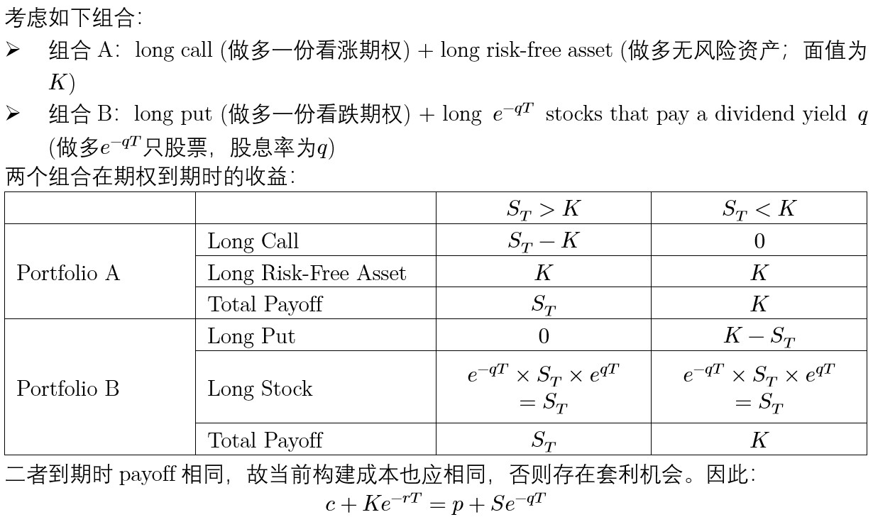 同学你好。不要把put-call parity和远期合约定价公式混淆。有股息的put-call parity推导见下图。