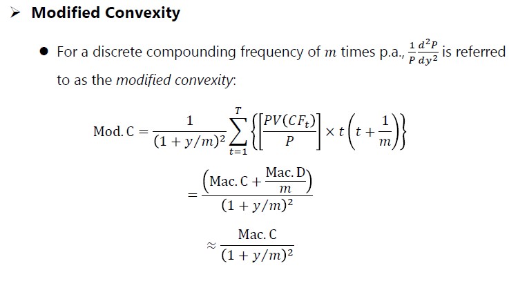 同学你好。这里用的是最严谨的计算modified convexity的公式,原版书上的计算方式只是一个近似(见图1)。从考试的角度出发用原版书的计算公式即可。至于这道题没有求和符号,这是因为这道题是一个零息债券哈。