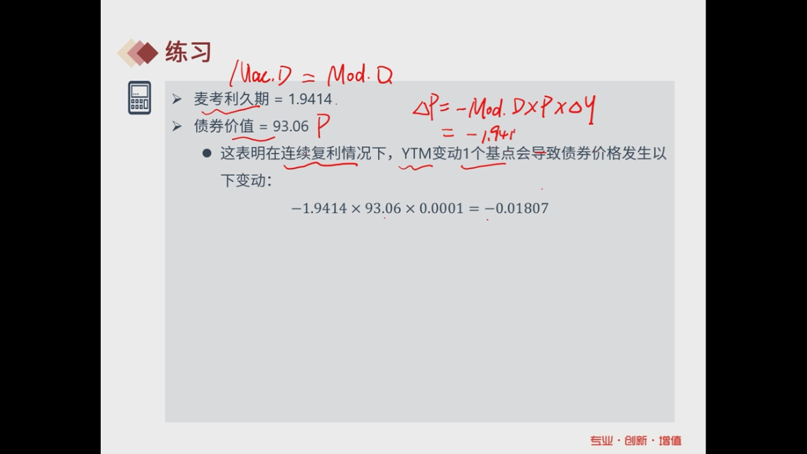 这里计算结果怎么是-的了?上一张ppt里面的公式:美元久期、DV01
