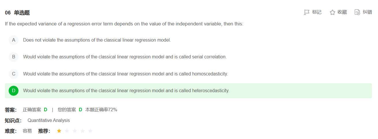 为什么没有可能是C选项的同方差呢?没有看到哪里说一定要随着自变量的增加而方差减小啊。