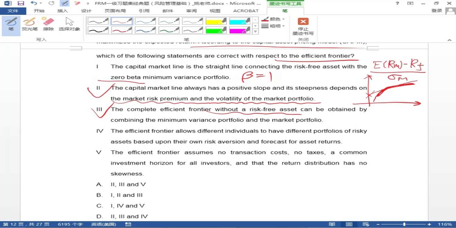 请问这里的III,市场组合和最小方差组合不就是两个点吗,如何能够使两个点组合成一条曲线呢