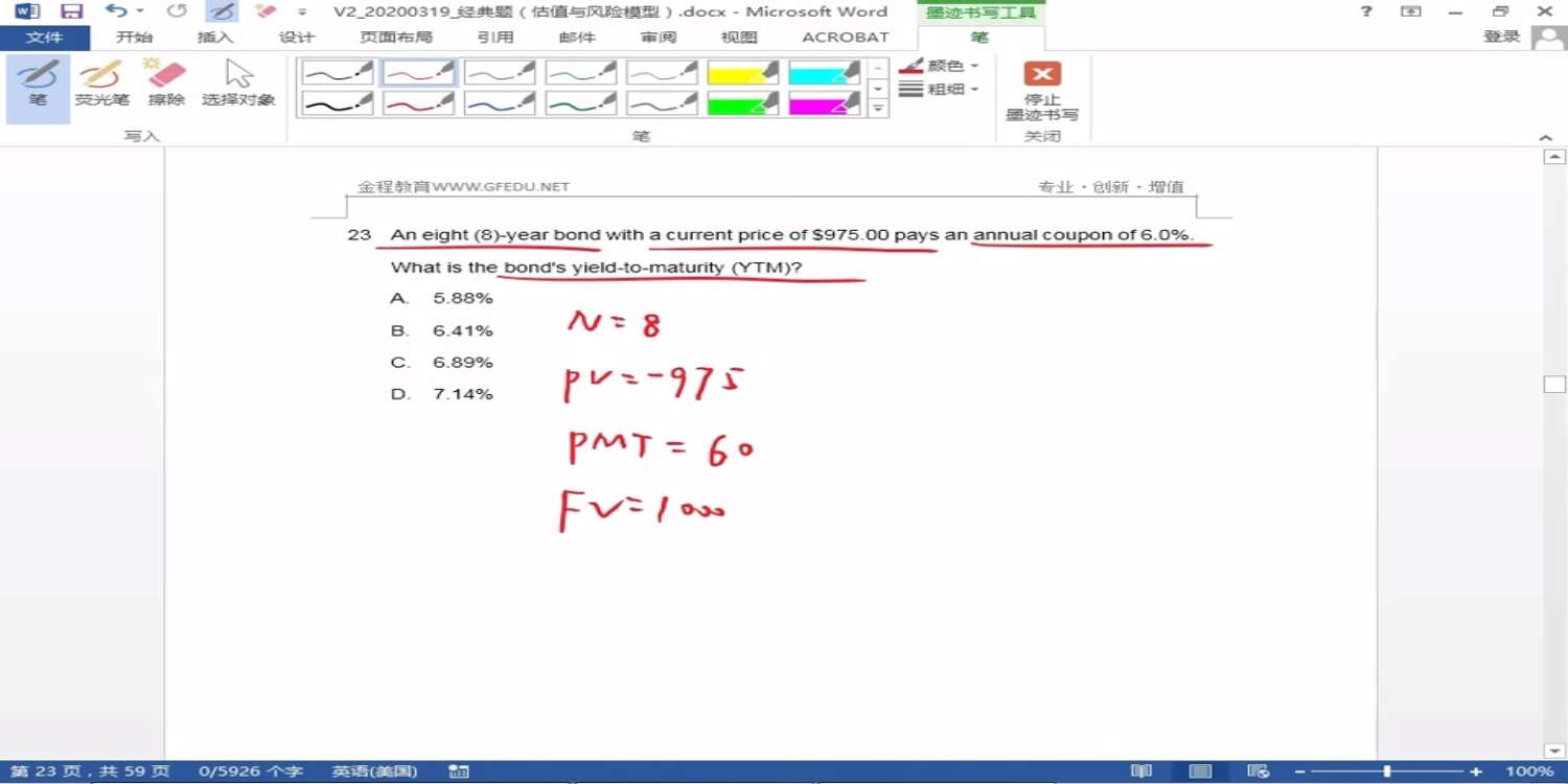 请问一下这题FV可以设任何数字吗?为什么一定是1000呢?FV设10000,然后PMT设600,可以这样算吗?