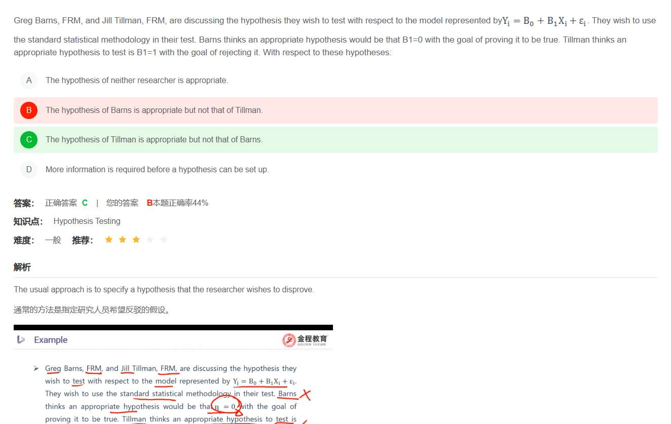 为什么B1=0不能放在原假设呢?首先Barns肯定是不认为B1=0的,因为这样就没有自变量了,所以就把想要拒绝的放在原假设及H0:B1=0。我这个逻辑是哪里出问题了?答案正好相反,听完讲解也还是不明白。