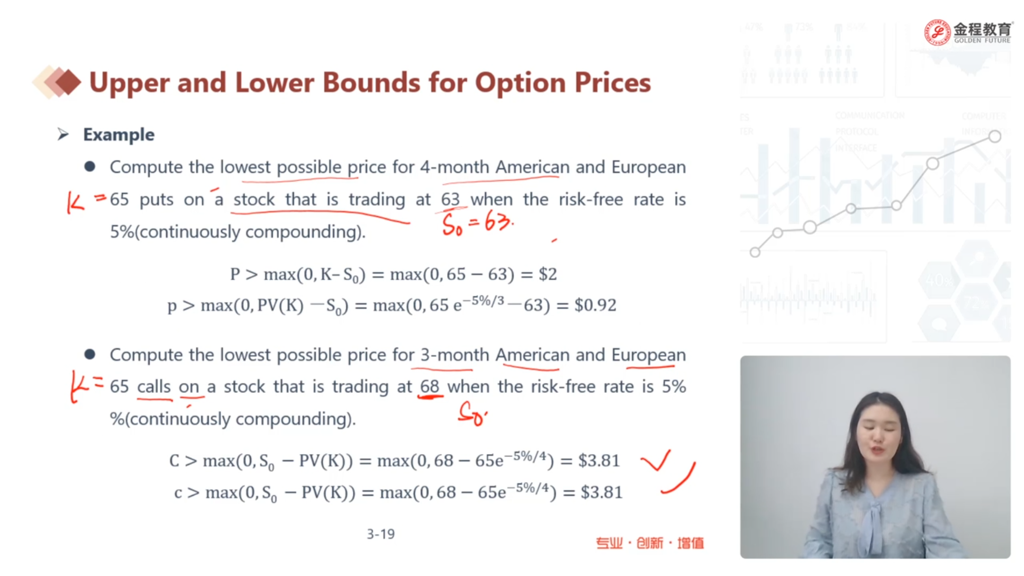 第二题里美式和欧式看涨期权都需要折现吗? 第一题里的看跌期权美式没有折现?