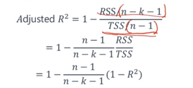 老师好,这里Adjusted R^2可不可以写成(ESS/k)/(T/(n-k-1))?为什么?