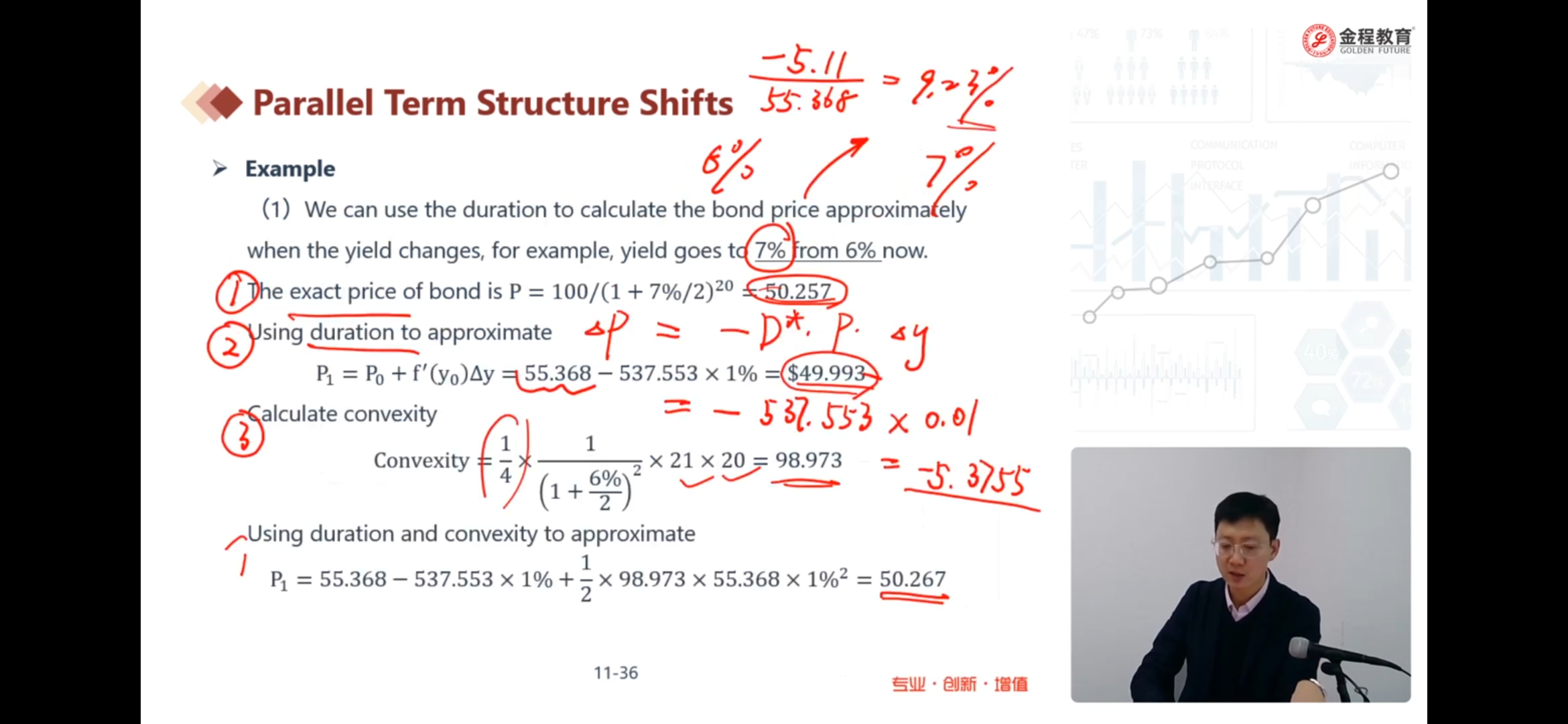 老师讲课说y下降,D+C<实际价,y上升,D+C>实际价。按照讲义p6-36的图形来看,如果y从14%变为13%,好像D+C还是比实际值要大呀