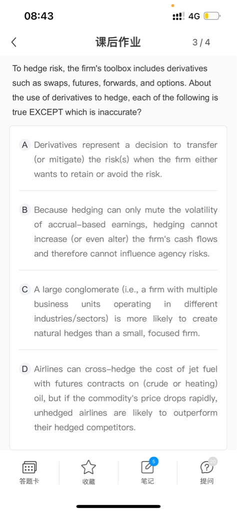 老师,保留风险应该是不采取措施嘛?请问A选项中,保留风险需要使用衍生品怎么理解。