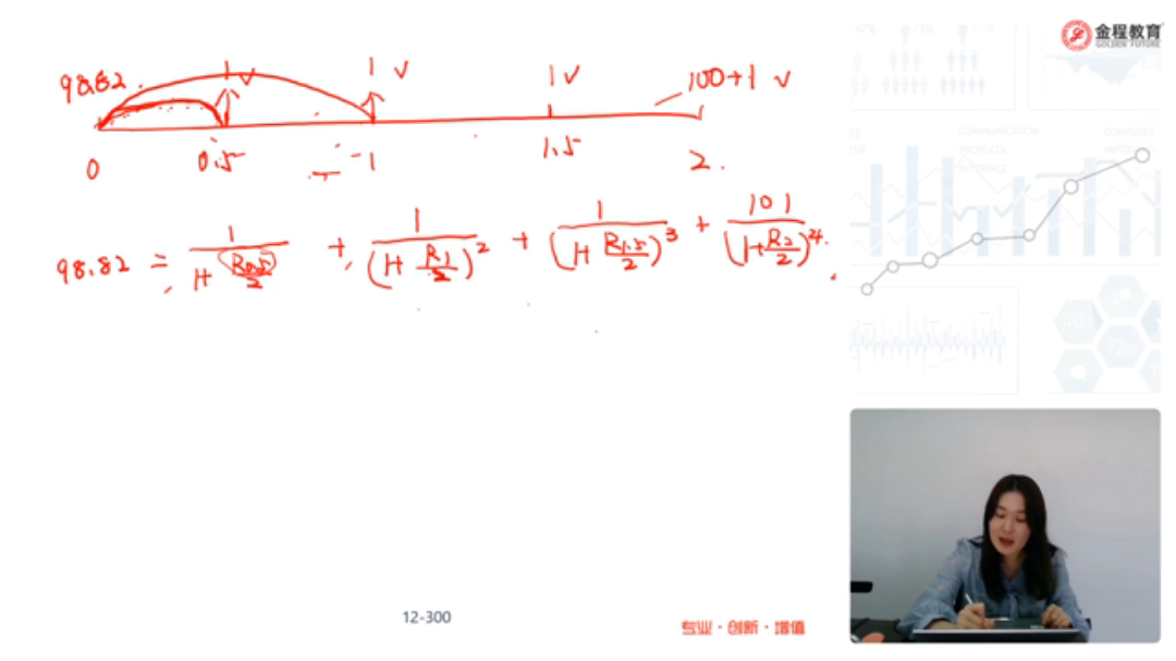 聽老師講解說這裡的mt代表是滾幾次利息,但是t不是應該代表年份嗎,這裡的債券不是2年期嗎,所以t不是2嗎,為什麼是1?