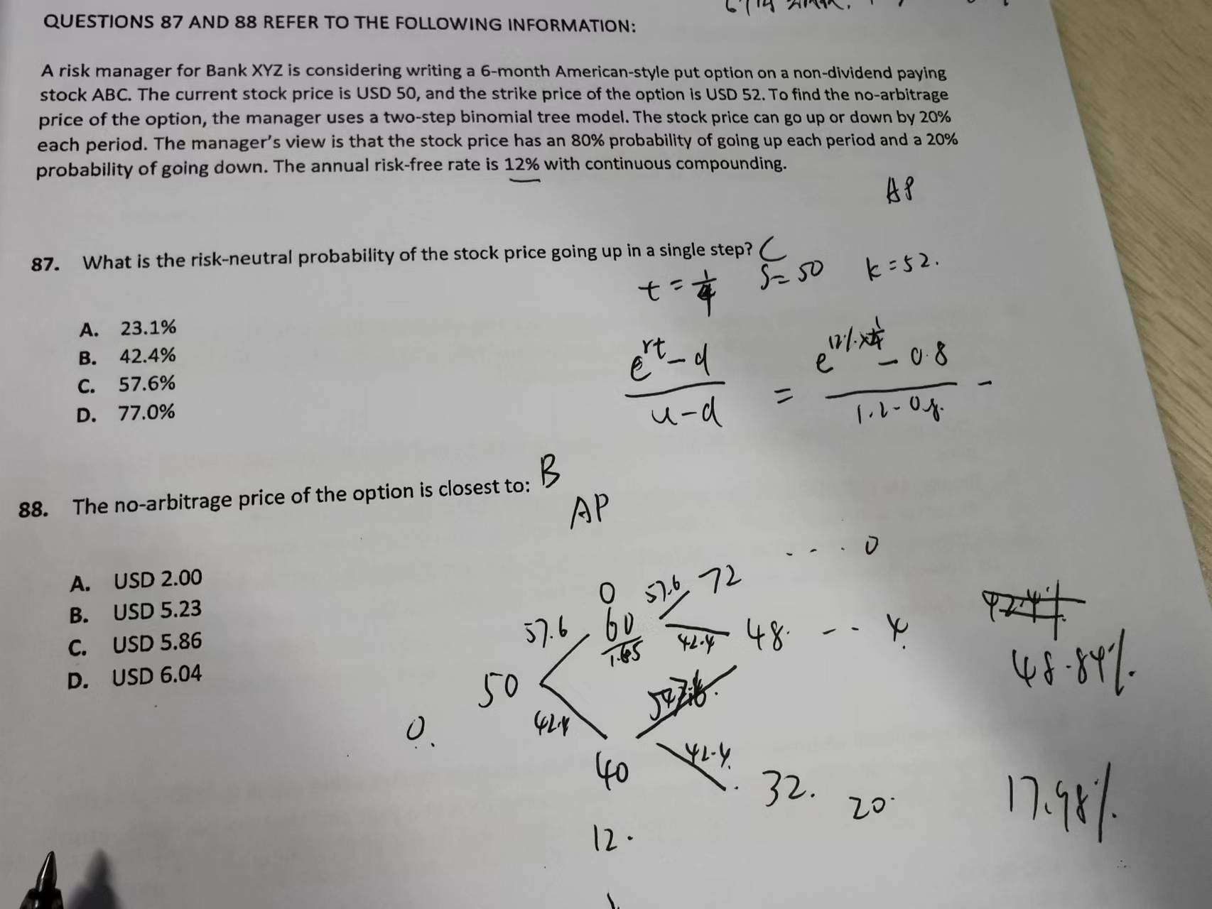 老师好,请看看第88题,我怎么算出来是5.23=4*0.576*0.424*2*e^-0.06 + 20*0.424^2*e^-0.06