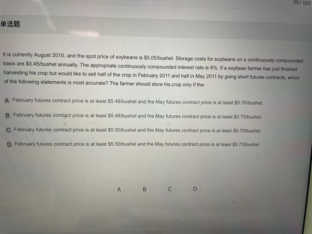 专场人数:3414提问数量:63382由图:问题1:讲解中老师说明CPT→I/Y可直接算出4.699与解析不符合,我摁出来和解析一致:是2.3498 问题2:解析中说明要乘以2,但是N=40代表的是40期每期付利即半年付利2.3498,本题正要求半年付利下的利差,我认为是2.3498-1.3=1.0498,即使计算器算出来的2.3498是年付利那也应该除以2得到半年付利的结果,我认为解析中乘以2是有问题的!