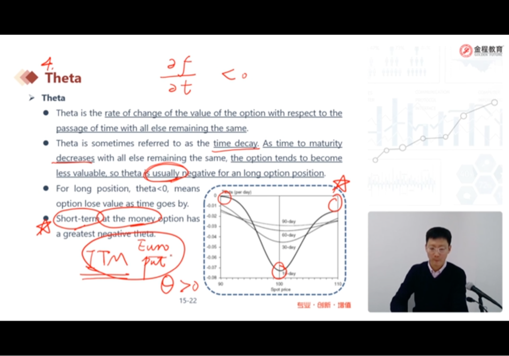 请问老师欧式看跌期权ITM的时候,在期权快到期时,不就说明期权价格下跌的机会变少了,就像看涨期权一样价格上涨的机会变少了,那theta不都应该是负值吗?