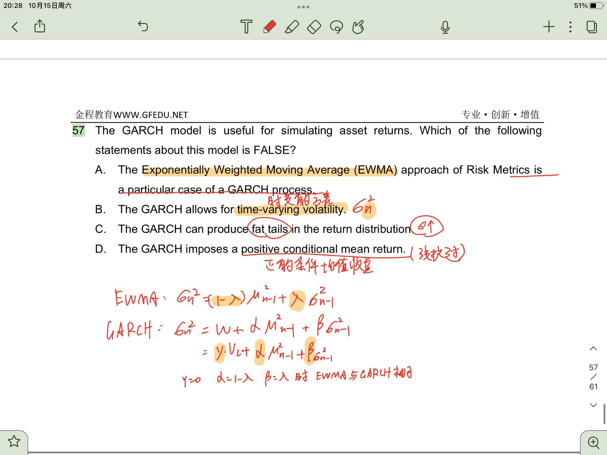 这个题的c选项肥尾巴怎么和波动率有什么关系,为什么c正确呢