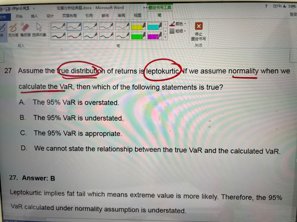 图画出来了 但还是不明白为什么是低估?比的依据是什么? 还有VaR为什么在左边?