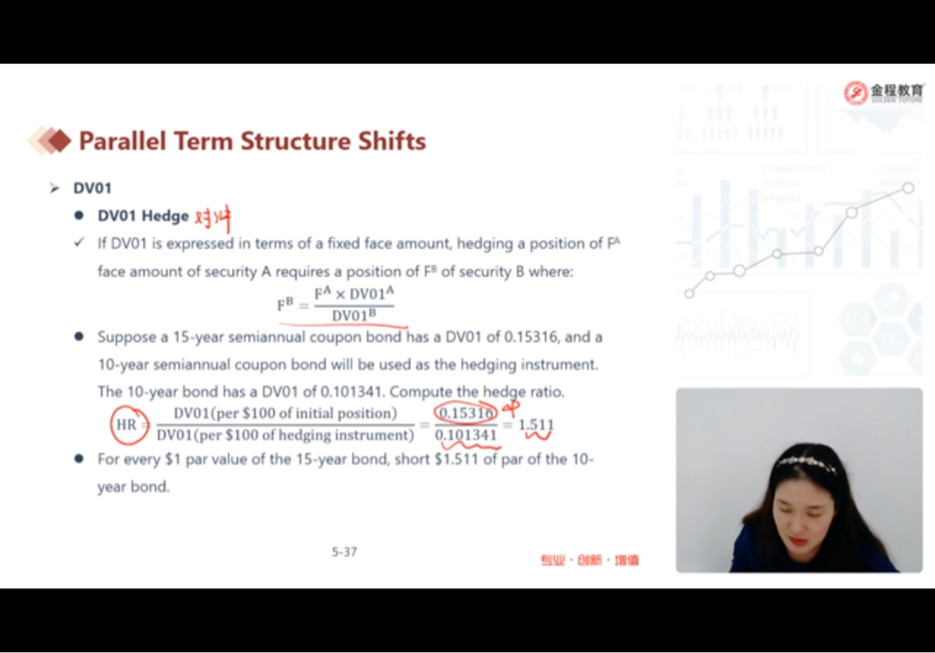 请问最后的$1 par value怎么解释呢?这里的1.511 表示的不是利率变动一个bp需要1.511份B债券来覆盖风险吗?难道DV01的变化是基于每$1的基础上变化的吗?