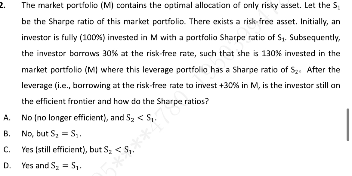 为什么还在有效前沿上 有效前沿不是不包括rf吗? 这个题什么意思?