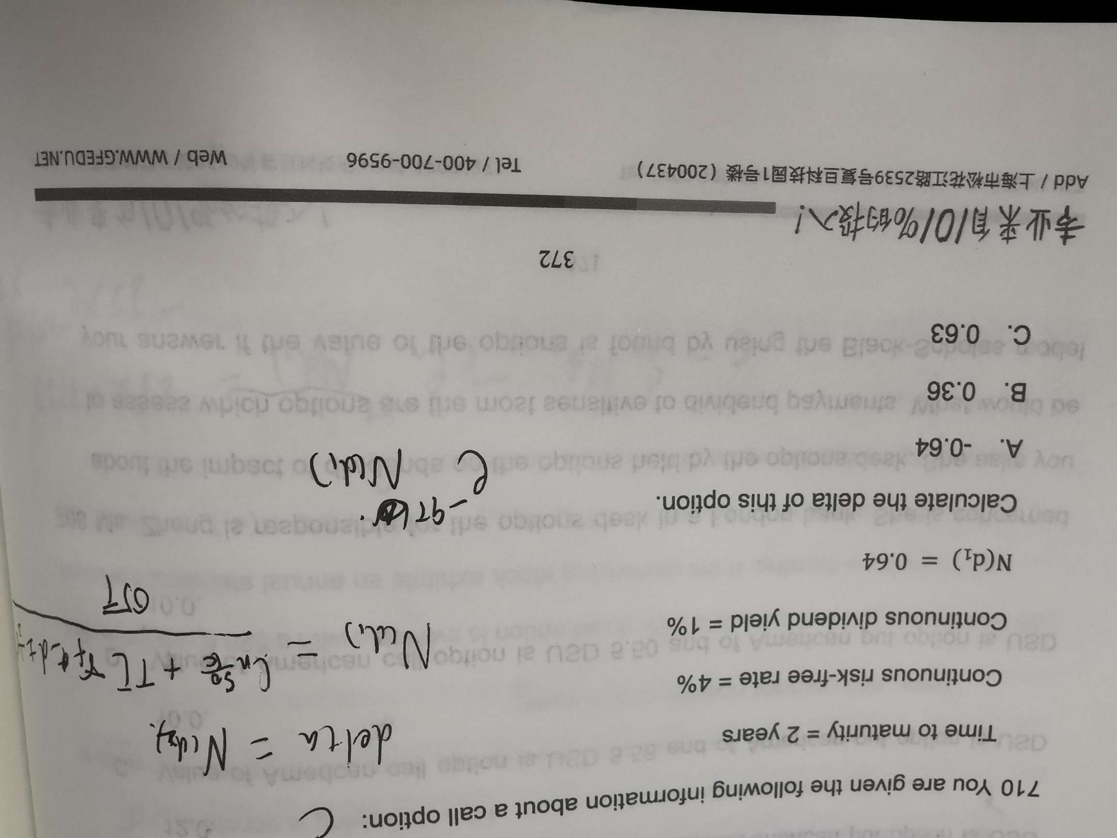 老师好,710题为什么不能用delta=N(d2)计算呀