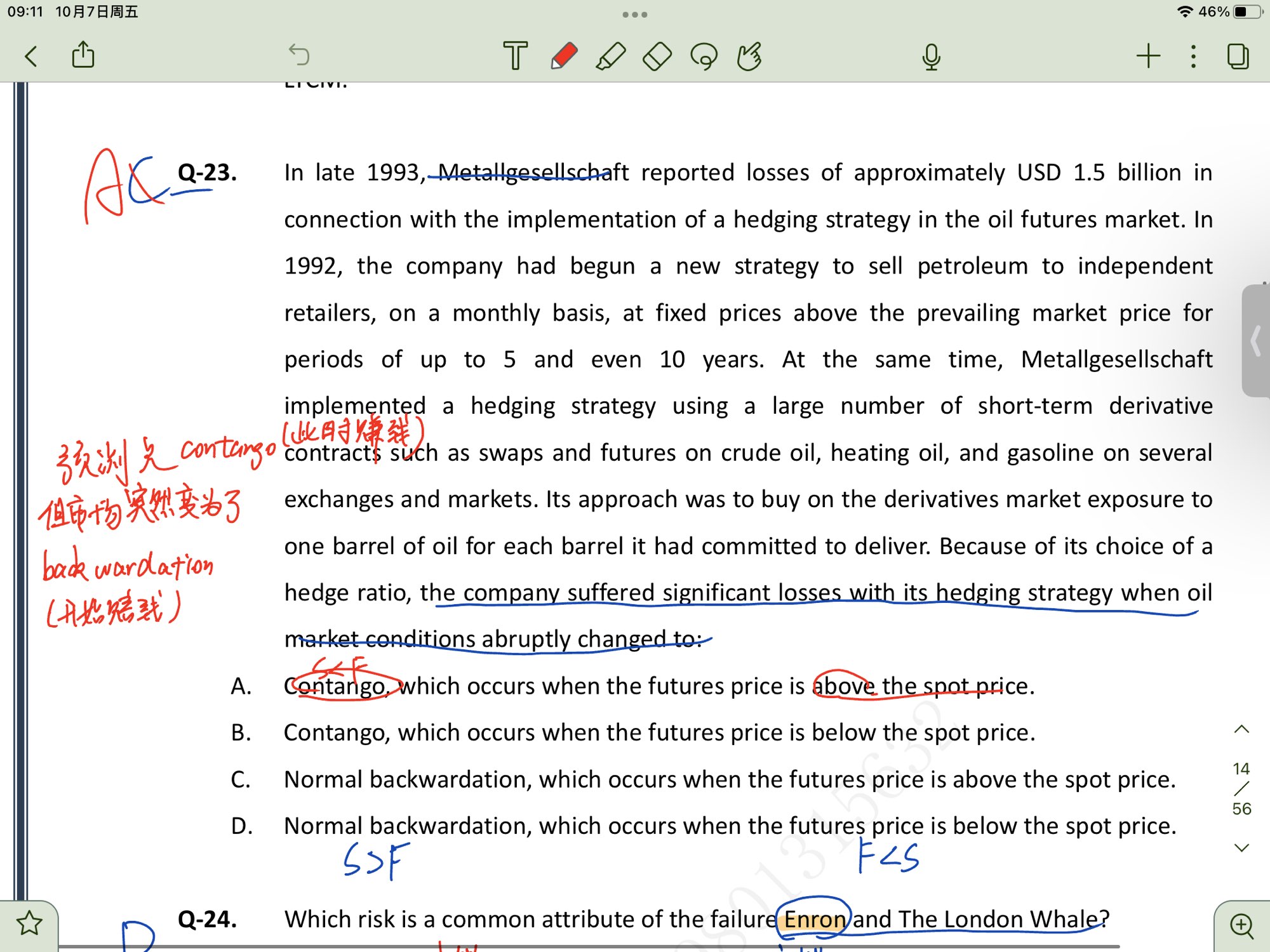 老师这个题为什说的是德国金属公司在contango的时候是赚钱在backwardation时是亏钱的啊