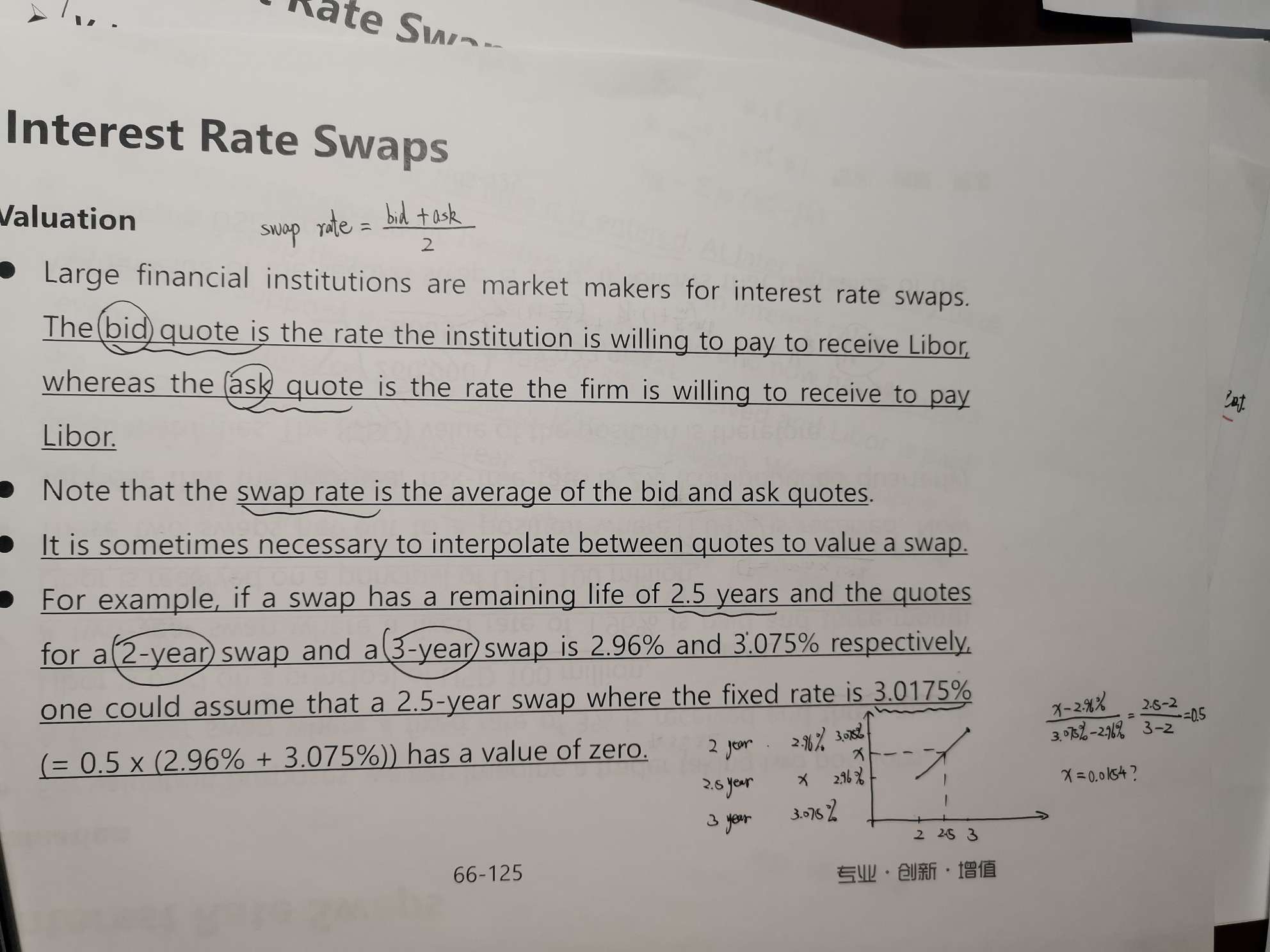 请问用线性差值法算出来的2.5年的swap rate是3.0175%吗?怎么我用那个公式算出来的X是0.0154,我算了两遍都是这个数据。