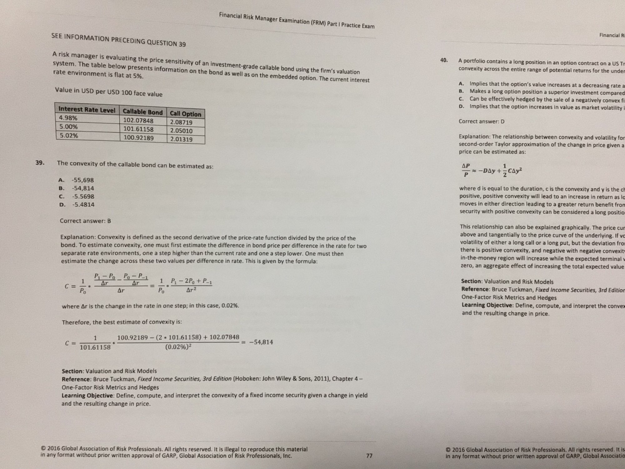 老師你好,這裏的38和39題不太明白可以解釋一下嗎?為什麼38題,他計算的時候要把call option加進去計算?但39題他不用加進去,而且為什麼他用effective convexity的公式來計算?
