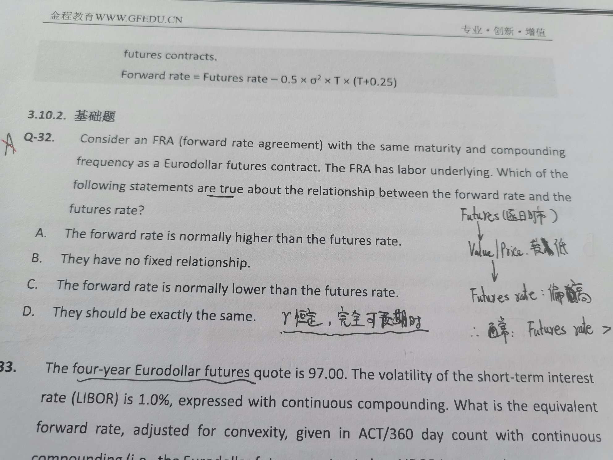 请问D选项对于futures read和forward rate一样的前提是:利率恒定并且完全可预期,还是利率恒定或者利率完全可预期?